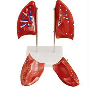 肺解剖模型自然大小,分成4件。兩瓣肺葉可取下,示其內(nèi)部結(jié)構(gòu)。有底座。