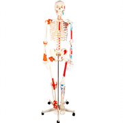 這款經濟型的、真人大小的、關節(jié)相連的人體骨骼模型是基礎解剖教學的理想模型,物美價廉。手臂和腿部可拆下供研究。顯示神經分支、脊椎動脈和腰椎間盤等。整體模型在人體全身骨骼模型的基礎上的半邊進行肌肉附著點著色、半邊進行關節(jié)附韌帶。