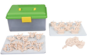本模型由PVC制成,自然大,為人體脊椎的各部分骨塊,由7塊頸椎骨、12塊胸椎骨、5塊腰椎骨及1塊尾椎骨組成,用精美的塑料箱包裝。