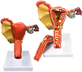 展示了女性內(nèi)生殖器的病理形式,包括纖維瘤,粘膜下肌瘤,壁內(nèi)肌瘤,子宮內(nèi)膜癌,宮頸癌,輸卵管炎,卵巢囊腫,宮頸癌,念珠菌病,子宮內(nèi)膜炎,內(nèi)膜息肉等病變及其位置。