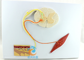 該模型,采用放大式設(shè)計,詳細(xì)的展示了反射弧模式,包括中樞神經(jīng),傳入/傳出神經(jīng),感受器,將效應(yīng)器,完慗的展現(xiàn)了反射弧的各個部分