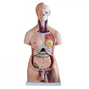 這款兩性軀干模型分成40件:軀干,女性胸腔蓋,頭,眼球,腦(8件),脊椎神經(jīng)(4件),肺(4件),心(2件),氣管,食管和主動脈,橫膈膜,肝,腎,胃(2件),腸(4件),男性生殖器官(4件)和女性生殖器官帶胎兒(3件)。