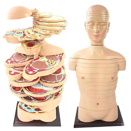 這個真人大小的軀干模型被水平切成24塊,給出了計算機斷層掃描的工作原理。每個切片都可以旋轉(zhuǎn)和移除,以更仔細地檢查其解剖細節(jié),包括肌肉、神經(jīng)在內(nèi)的所有結(jié)構(gòu)都在隨附的手冊上進行了編號和識別。