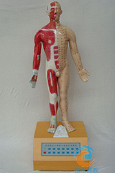 電動語言十四電動針灸模型一側(cè)示肌肉、皮神經(jīng),一側(cè)示十四經(jīng)脈、穴位及經(jīng)外穴,共展示360個穴位點及十四經(jīng)脈起止經(jīng)過(含經(jīng)外穴),控制面板上有各條經(jīng)脈對應(yīng)的按鈕(手太肺經(jīng)穴、手陽明大腸經(jīng)穴、足陽明胃經(jīng)穴、足太陰脾經(jīng)穴、手少陰心經(jīng)穴、手太陽小腸經(jīng)穴、足太陽膀胱經(jīng)穴、足少陰腎經(jīng)穴、手厥陰心包經(jīng)穴、手少陽三焦經(jīng)穴、足少陽膽經(jīng)穴、足厥陰肝經(jīng)穴、督脈穴、任脈穴),按動按鈕,有燈光顯示及語音播報經(jīng)脈線名稱及其經(jīng)脈上對應(yīng)的穴位名稱。