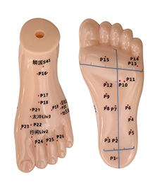 用PVC制成的大規(guī)格的人足模型,穴位用漢字或數(shù)字標注。附中英文使用手冊。