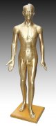 這款青銅色的模型非常詳細地標明了14條主要經(jīng)絡線,身體右側是361個經(jīng)穴和48個經(jīng)外穴以及骨度線,即用“寸”來方便地測量針灸點之間的距離。身體左側是皮下組織,顯示神經(jīng)系統(tǒng)分布、動靜脈、血管和肌肉構造,還標明了在主要經(jīng)絡線上沒有標明的手足部的經(jīng)外穴。適用于中醫(yī)教學、針灸和推拿等。用玻璃鋼制成。尺寸:178CM高。