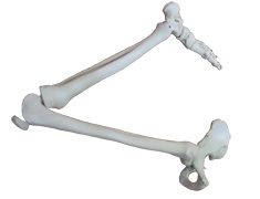 ■為游離下肢骨帶髖骨模型,由金屬線穿接顯示髖骨、股骨、脛骨、腓骨和足骨(包括跗骨、跖骨、趾骨)的組成及其關(guān)節(jié)等形態(tài)結(jié)構(gòu)特點(diǎn)