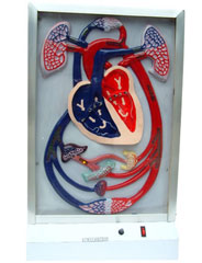 3、本模型采用透明塑料制作,加上顏色的噴寫,通過電燈光的閃爍,可明顯顯示出體循環(huán)、肺循環(huán)、動(dòng)脈血和靜脈血的顏色的相互轉(zhuǎn)化及心肌的瓣膜的周期博動(dòng)。