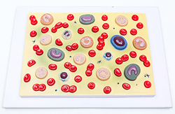 此寬模型放大2000倍,直觀地顯示人體血液細胞組成,包括紅細胞,各種白細胞等。方便用于教學(xué)展示使用。